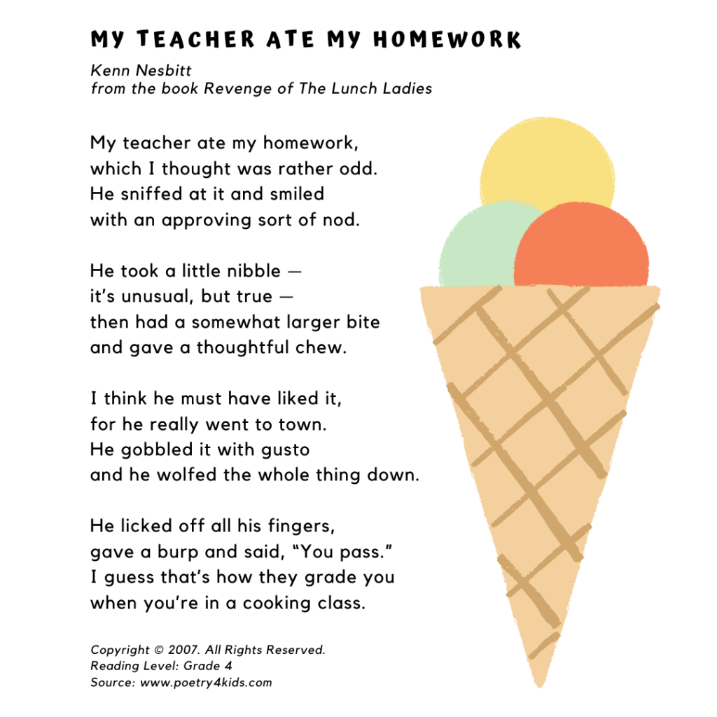 Copyright © 2007. All Rights Reserved. Reading Level: Grade 4. Source: www.poetry4kids.com