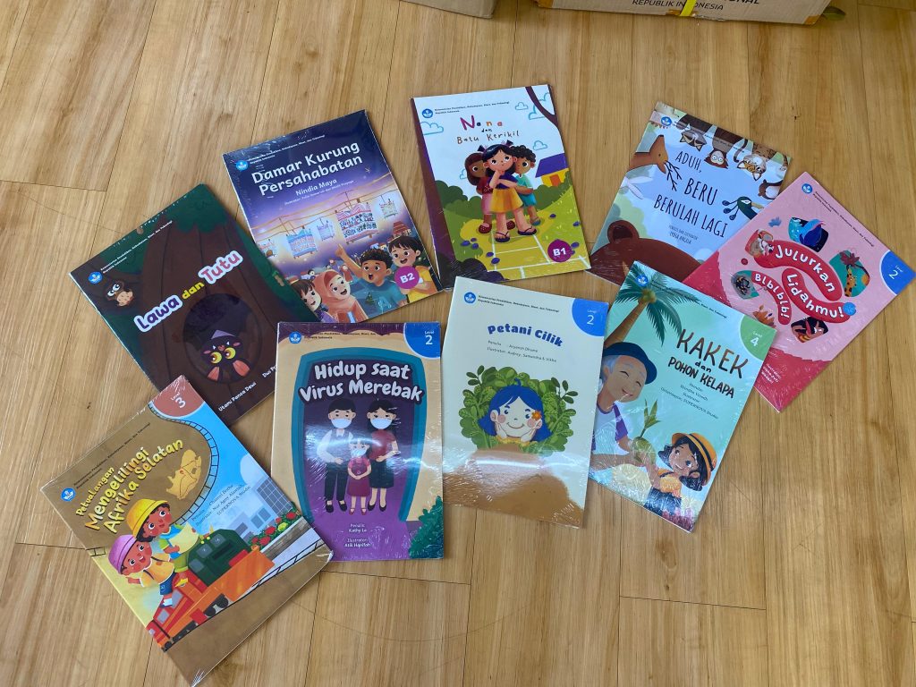 Koleksi buku yang diterima mencakup berbagai jenjang usia, mulai dari anak-anak PAUD hingga SD, dengan ragam jenis bacaan seperti cerita bergambar, fabel, dan buku bacaan ringan lainnya yang menarik dan edukatif .